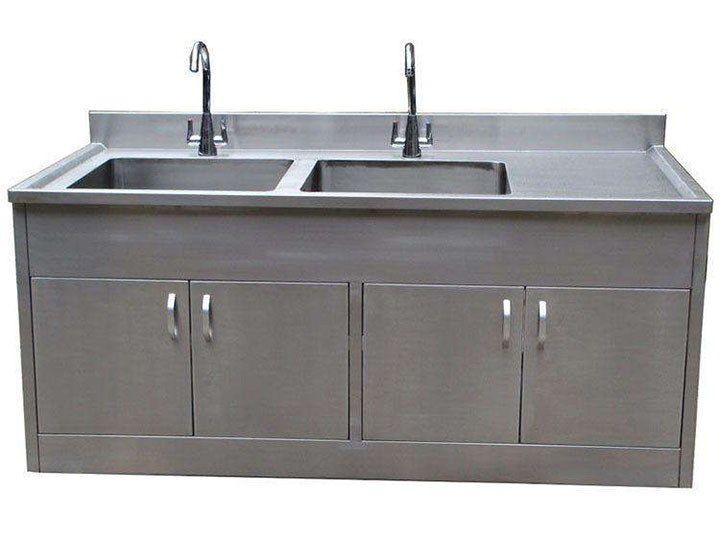 2.加工工藝:臺(tái)面板內(nèi)側(cè)增加100mm不銹鋼擋板,臺(tái)面下緣底部并加工止水溝防止積水滴入柜體內(nèi)。